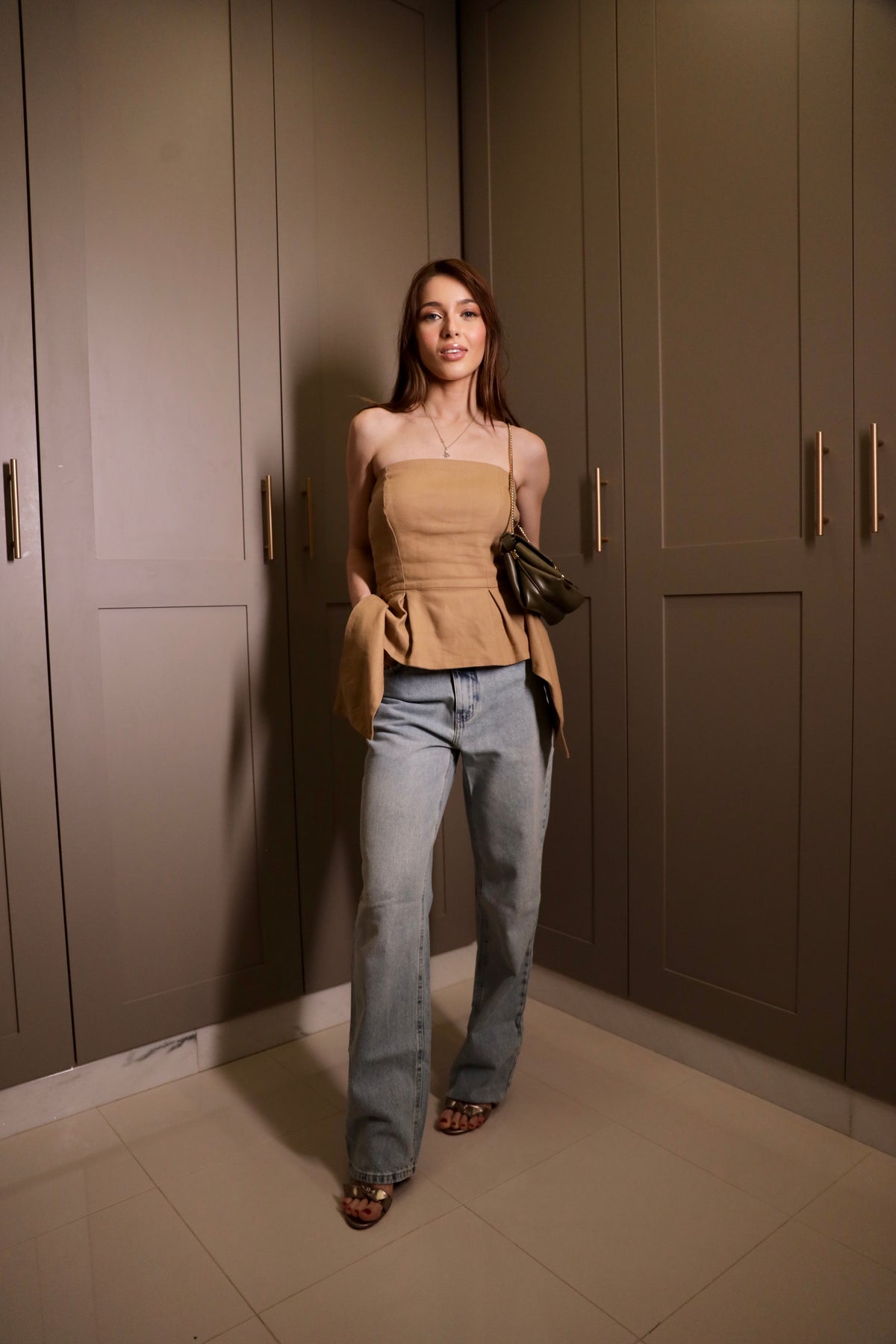Blusa corselet em tecido plano, tomara que caia, modelagem justa estruturada, babado em pregas na cintura, fechamento traseiro por zíper invisível, tecido estruturado com caimento reto, acabamento em babado pregueado.