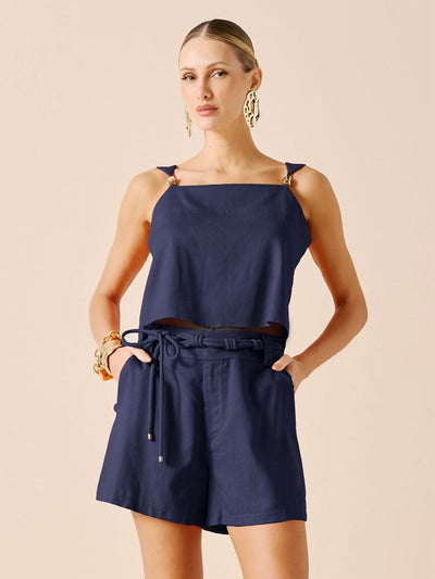 SHORT ALFAIATARIA COM CINTO DE CORDÃO