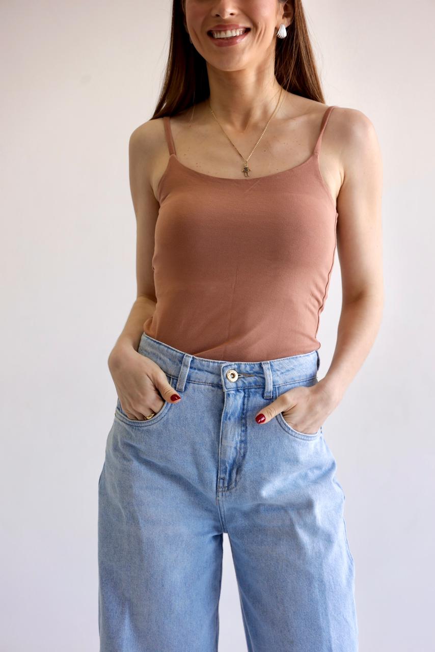 Leve e prática, esta regata básica de alça fina é um essencial do guarda-roupa. Confeccionada em malha macia com toque agradável e caimento perfeito, garante conforto ao longo do dia. Ideal para compor looks casuais no verão ou como primeira camada em sobreposições.